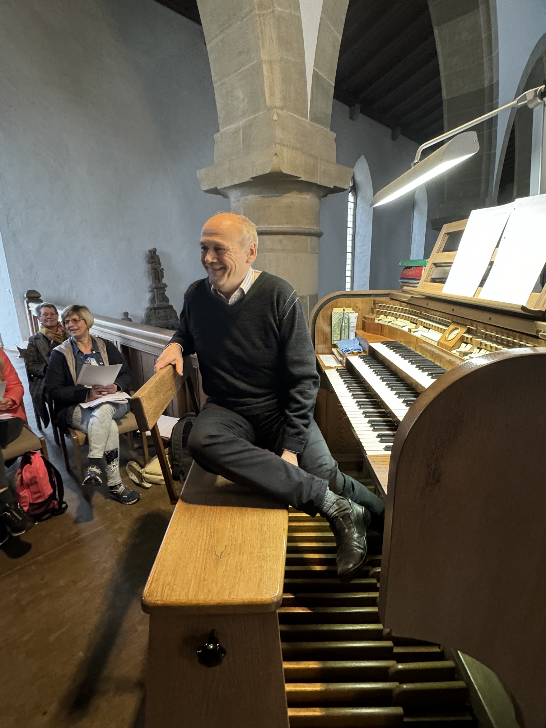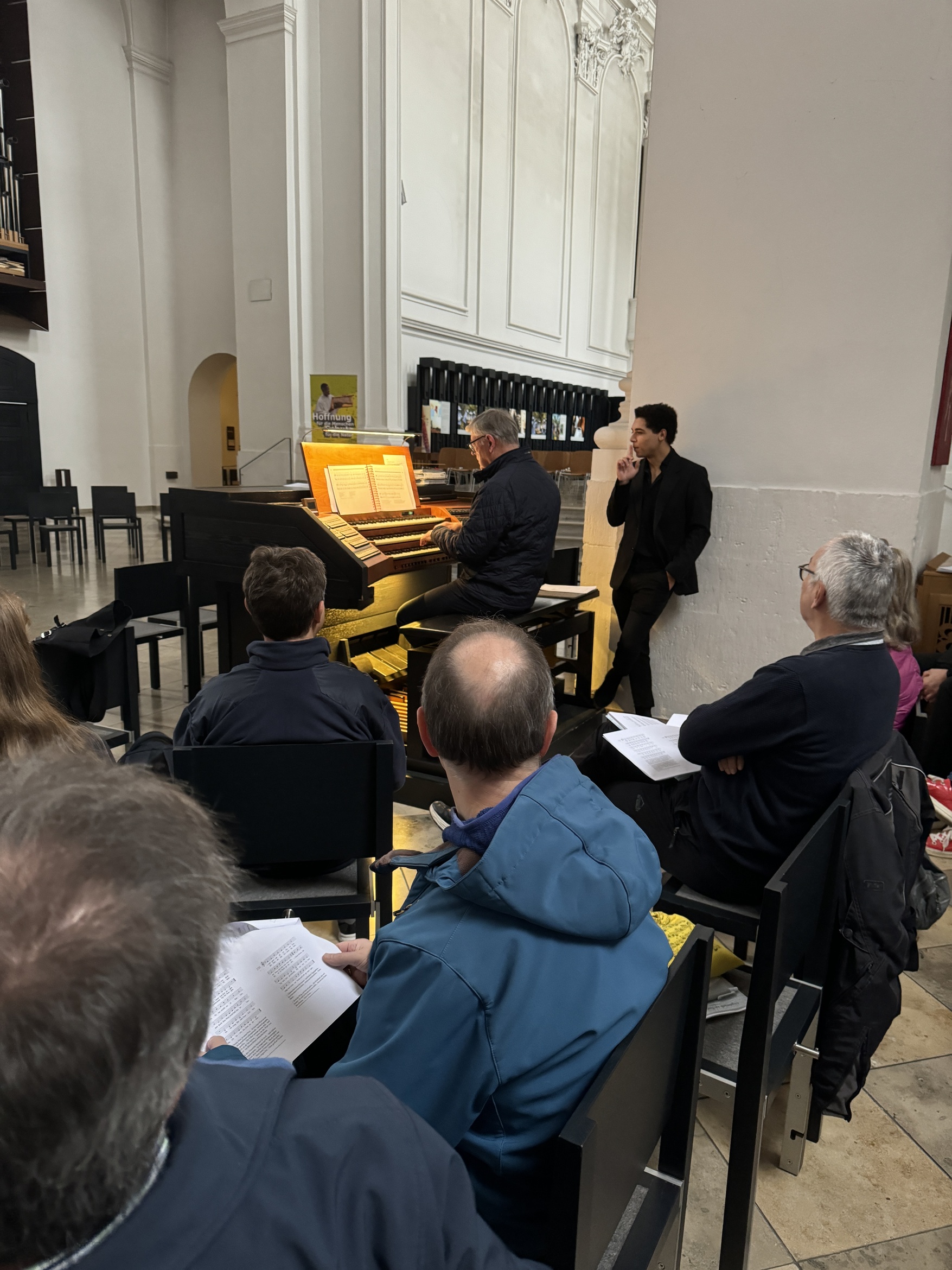 Der Workshop zur Vorstellung der weihnachtlichen Choralbearbeitungen und Orgelvorspiele von Dieter Blum in der Franziskanerkirche fand großes Interesse und erhielt eine Menge positive Rückmeldungen. Besonders geschätzt wurden die praxisnahen Handreichungen und die gut ausgewählten Stücke, die verschiedene Niveaus abdeckten. Von leicht ausführbaren Vorspielen bis zu anspruchsvollen Concerti und Trios war für jeden Teilnehmer etwas dabei.