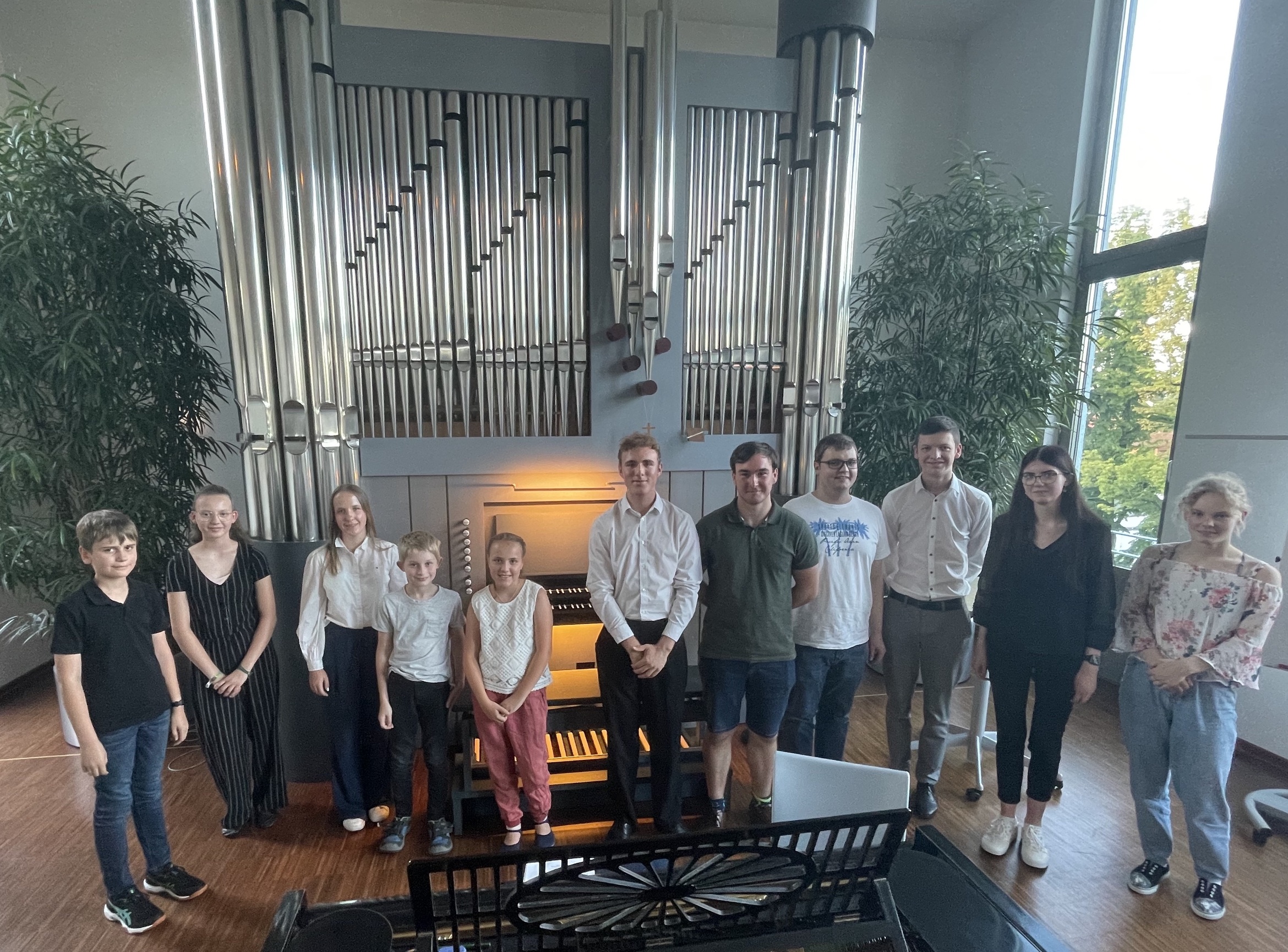 Am Abend des 10. Juli spielten im Konzertsaal des Regionalzentrums für Kirchenmusik in Schweinfurt 14 junge Orgelschüler aus den Orgelklassen von Stadtkantor Martin Seiwert (Schweinfurt), Dekanatskantor Wolfgang Schneider (Ebern), Stadtkantor Dieter Blum (Hammelburg) und Dekanatskantor Karl-Heinz Sauer (Gerolzhofen) ein teilweise recht anspruchsvolles Orgelprogramm mit Werken Johann Sebastian Bach bis Nicholas Choveaux. Mit dabei waren sowohl Anfänger, die erst seit einigen Monaten Unterricht hatten als auch weit fortgeschrittene Schülerinnen und Schüler, die unmittelbar vor ihren Abschlussprüfungen stehen und ihr Prüfungsprogramm sozusagen als Generalprobe vor dem zahlreich erschienenen Publikum vortrugen. Im Einzelnen spielten: Jakob Weid, Schweinfurt; Florian Schmitt, Gerolzhofen; Tilmann Dietrich, Zeilitzheim; Helena Fischer, Gerolzhofen; Jakob Wehner, Traustadt; Rebekka Reinhard; Paul Steinlein; Annemarie Fickel; Elisabeth Then; Emilie Stolper, Fuchsstadt; Josefina Stolper, Fuchsstadt; Benedikt Marks, Ebern und Robert Goldammer, Ebern.